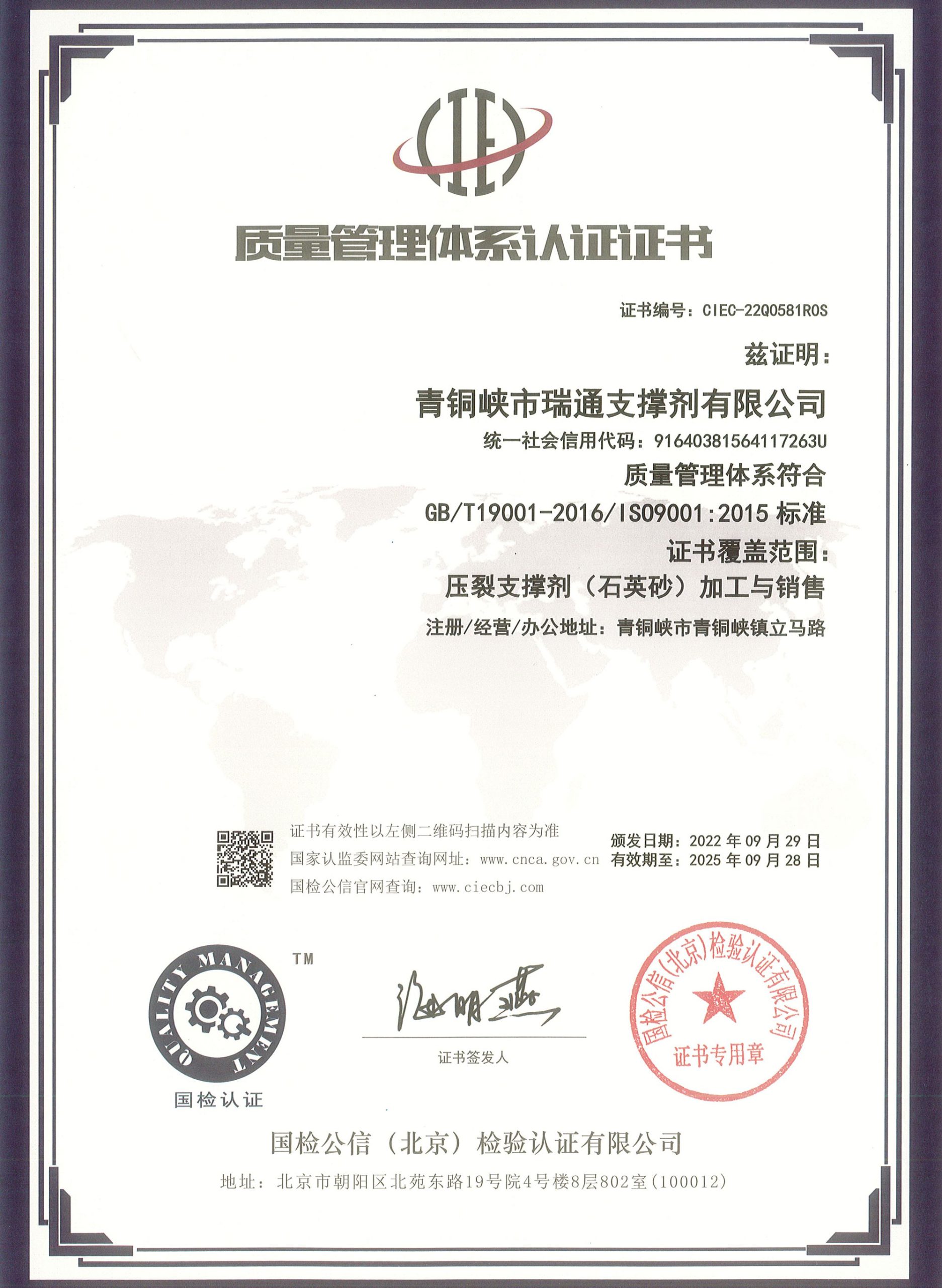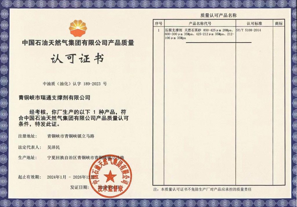 Весь операционный персонал прошел строгую техническую подготовку. Основная продукция включает пропанты фракций 212-106 мкм, 212-425 мкм, 300-600 мкм, 425-850 мкм и 850-1180 мкм (кварцевый и смолированный песок). Основными потребителями являются нефтяные месторождения CNPC «Чанцин», буровая компания «Чуаньцин», Синьцзянское нефтяное месторождение, Юймыньское нефтяное месторождение, буровая компания «Западная» и производители стали в Китае. Для обеспечения поставок непосредственно к буровым площадкам компания создала специализированные складские комплексы в регионах Шэньси, Ганьсу, Нинся и Внутренней Монголии. За десятилетний период развития предприятие сформировало полную систему контроля качества, соответствующую государственным и отраслевым стандартам, и является ключевым поставщиком CNPC с комплексным производственным потенциалом.